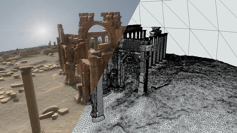 Palmyra Castle, located in the province of Homs, Syria, is listed as one of the UNESCO World Heritage sites in danger due to the Syrian civil war. Explore the crowdsourced photogrammetry of the castle generated from HD video footage of a paraglider circling above.
